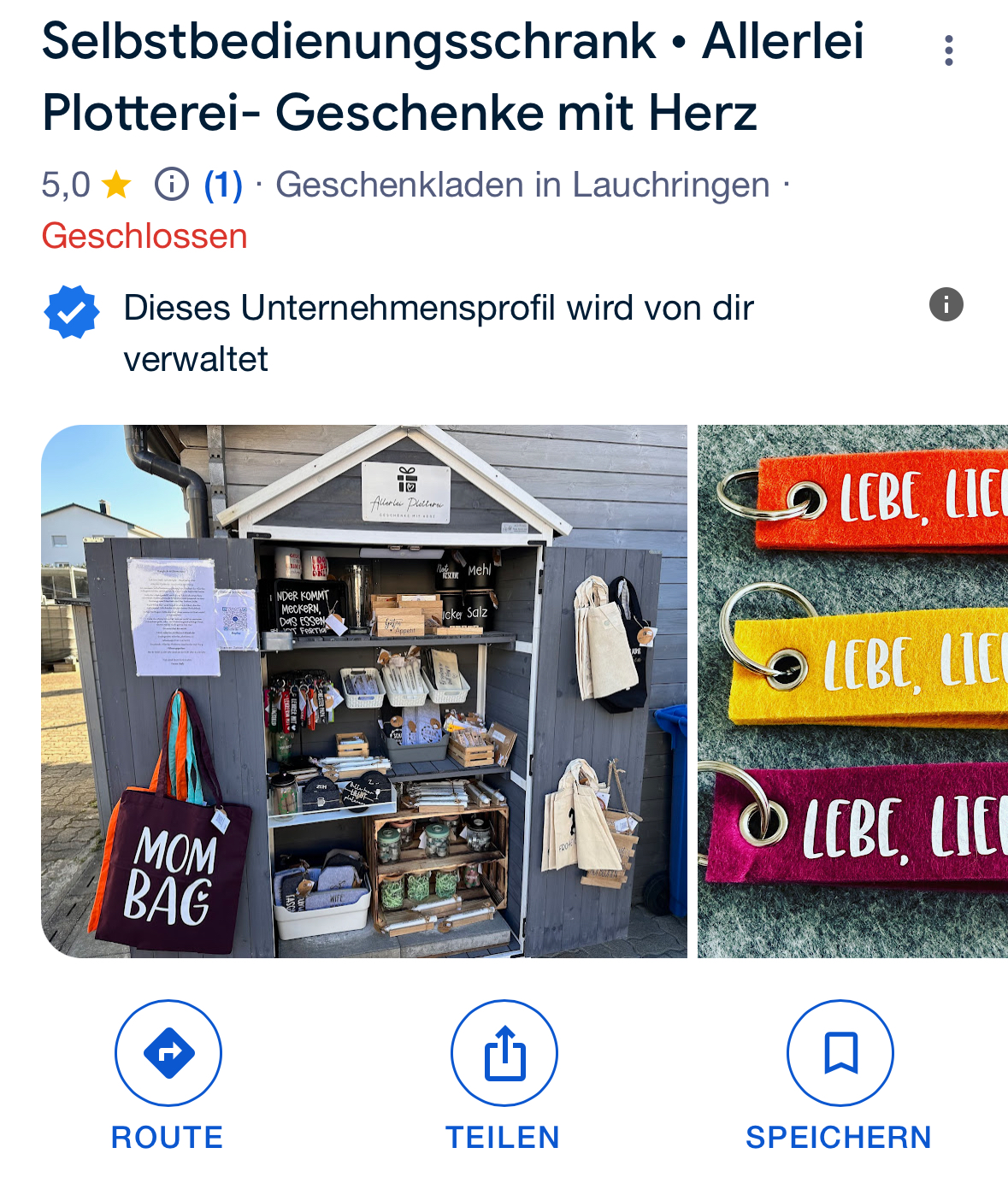 Schau auch gerne mal in meinen Verkaufsschrank wenn du in meiner Nähe wohnst. Hier findest du kleine Mitbringsel und Geschenke. Die Angebotspalette wird auf die aktuelle Jahreszeit regelmäßig angepasst.